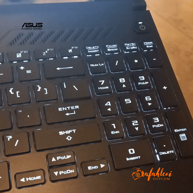 Keyboard ASUS TUF Dash F15 ini juga nyaman untuk melakukan aktifitas harian maupun sebagai keboard game. Saat dibuka  akan nampak jelas laptop ini adalah laptop gaming dengan keberadaan keyboard 4 hot keys.